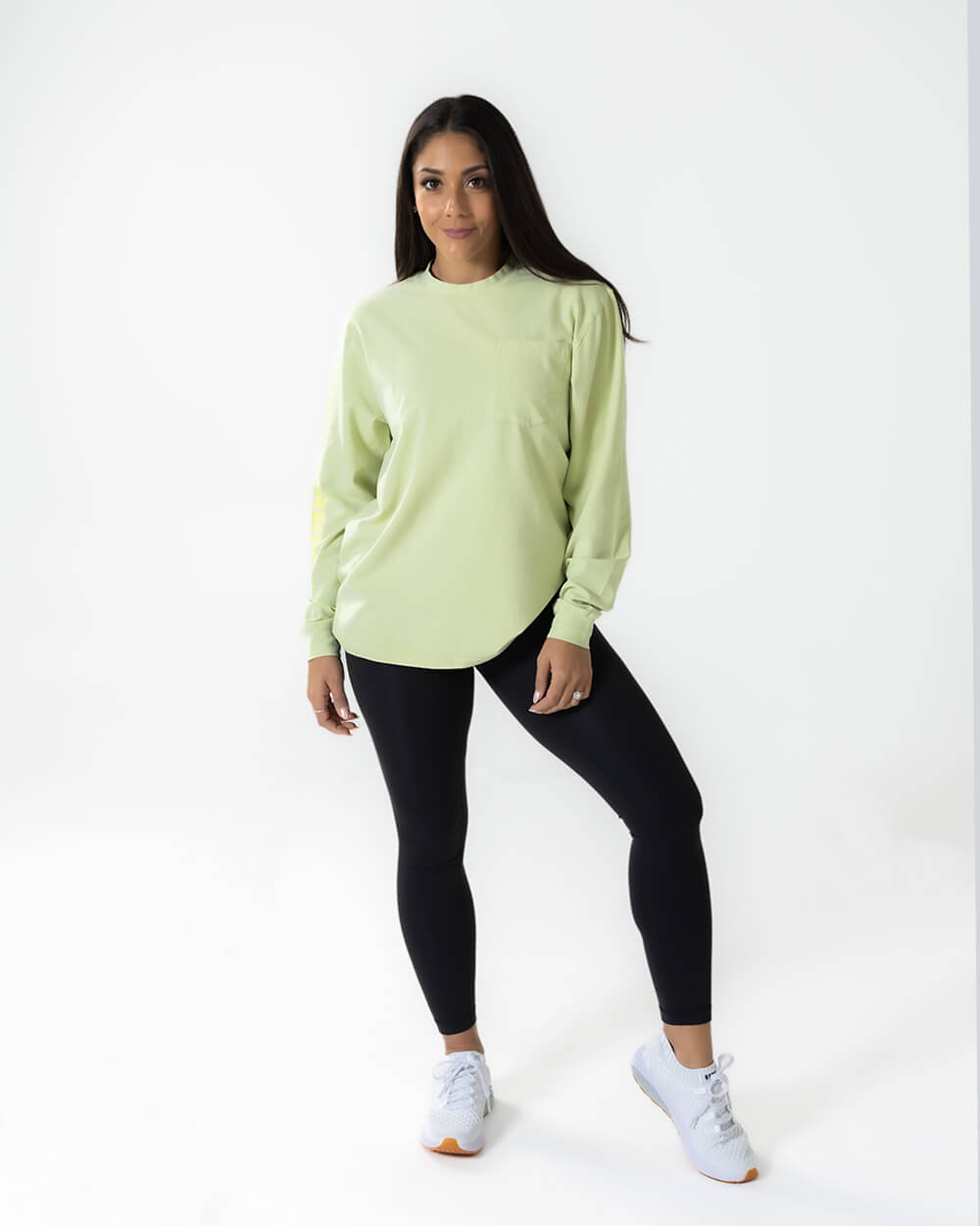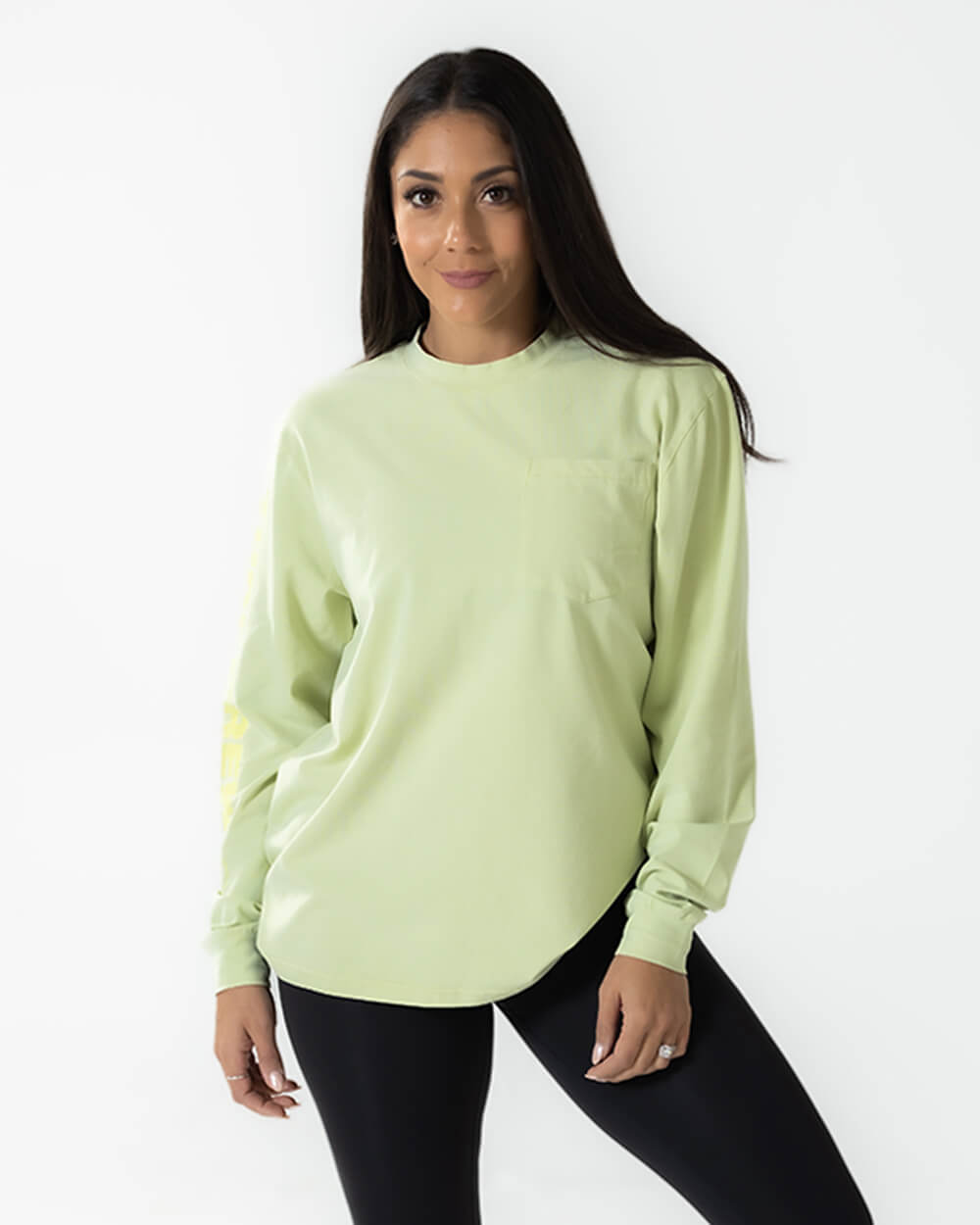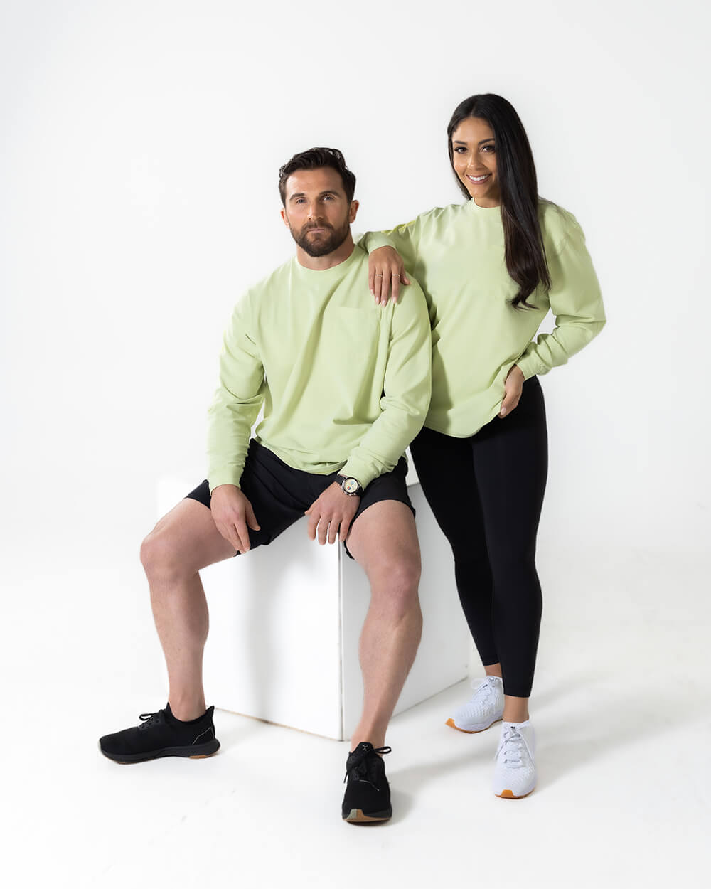 Female model wearing a size Small and showcasing oversized fit. Male model wearing size Large. Men size up one size.